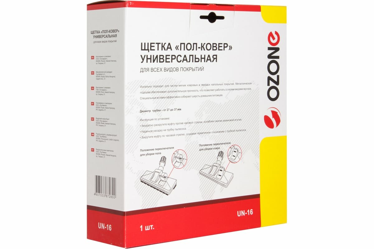 OZONE Универсальная щетка для пылесоса "Пол-ковер" Ozone для всех видов покрытий, под трубку 27-37 мм UN-16