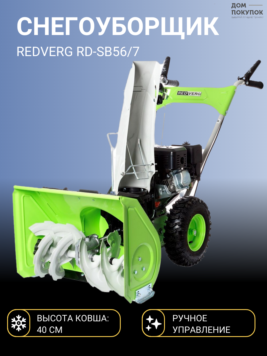 Ниже Вы можете прочитать отзывы на Снегоуборщик REDVERG RD-SB56/7, бензиновый, самоходный, ознакомится с подробными характеристиками, посмотреть интересные обзоры и фотографии на Снегоуборщик REDVERG RD-SB56/7, бензиновый, самоходный.