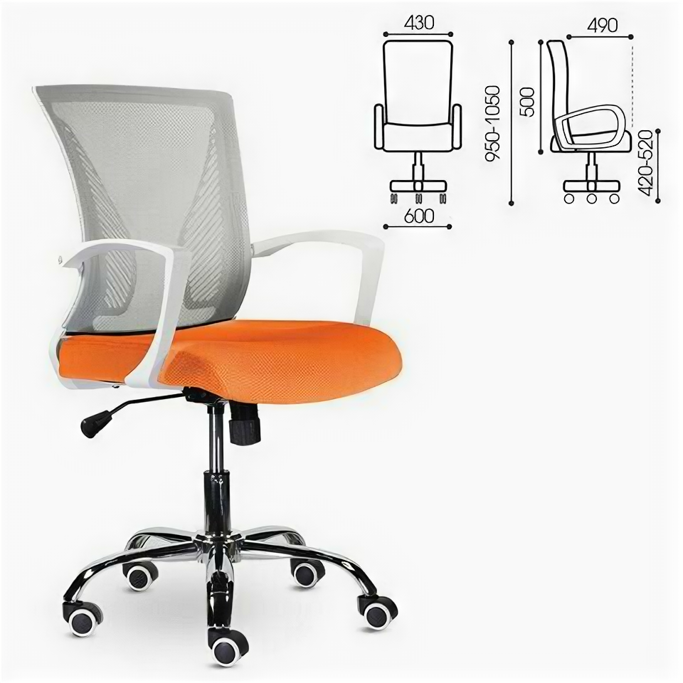 Кресло BRABIX "Wings MG-306", пластик белый, хром, сетка, серое/оранжевое, 532011