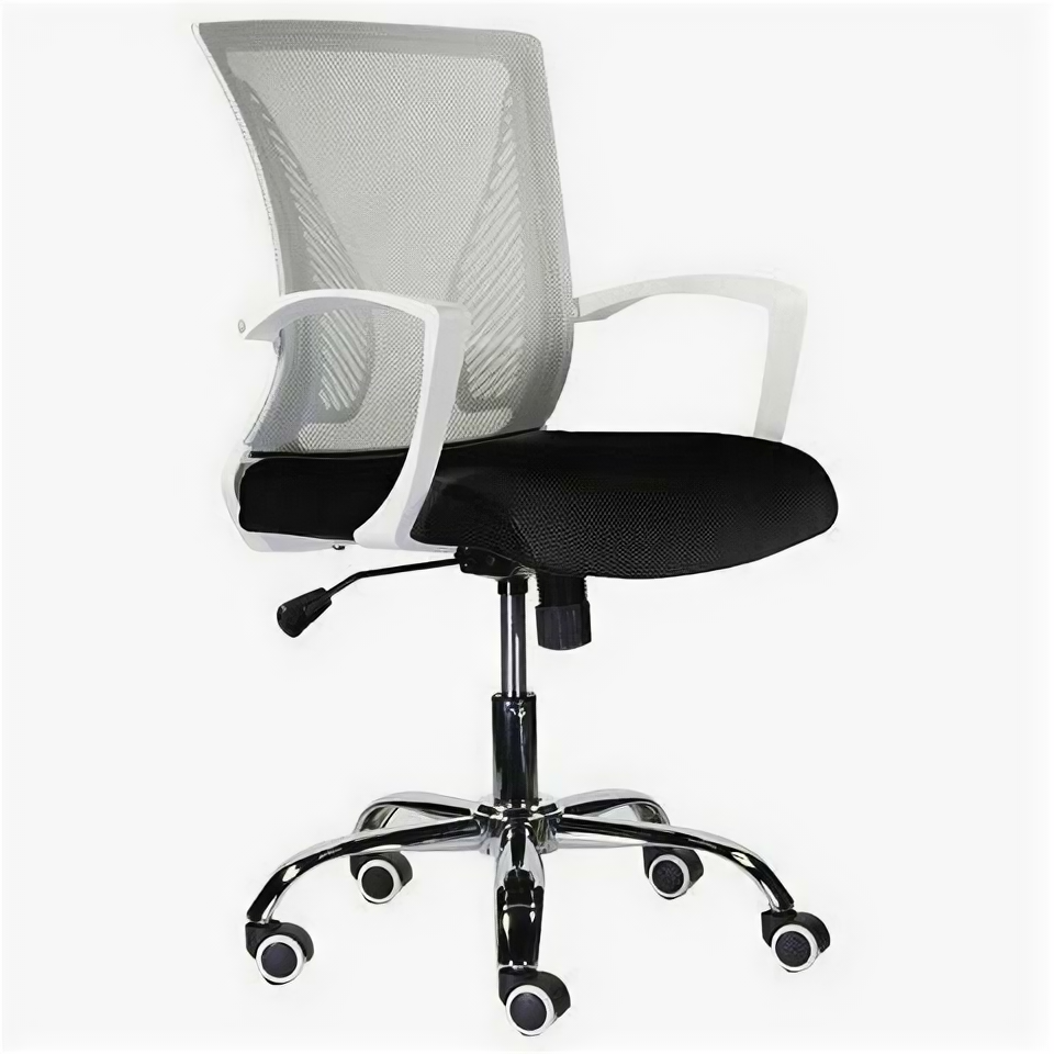 Кресло BRABIX "Wings MG-306", пластик белый, хром, сетка, серое/черное, 532010, 1шт в компл.