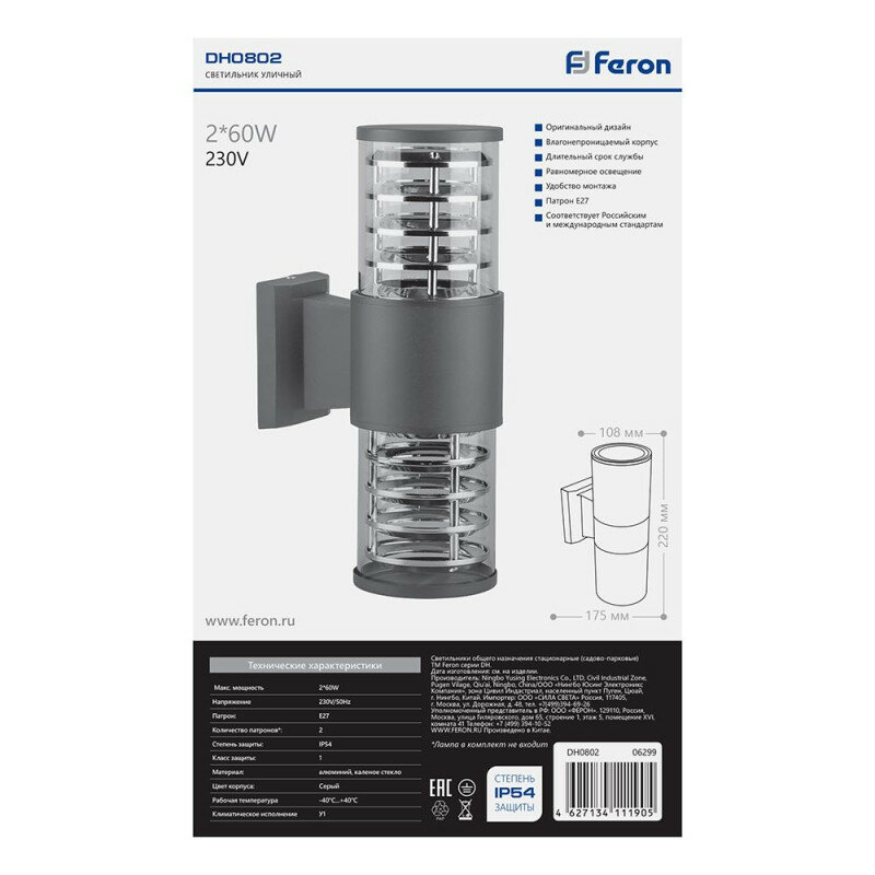 Типы/Уличное освещение/Уличные настенные Feron Уличный настенный светильник Feron DH0802 06299