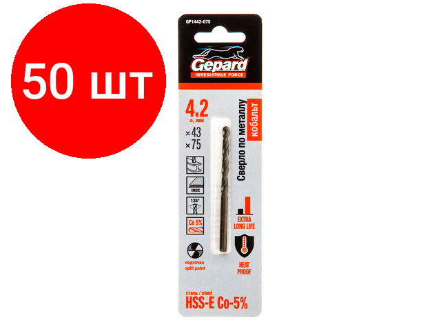 Комплект 50 штук, Сверло по металлу ц/х 4.2х43х75 мм HSS-Co GEPARD (кобальт 5%) (GP1442-075) интересное: