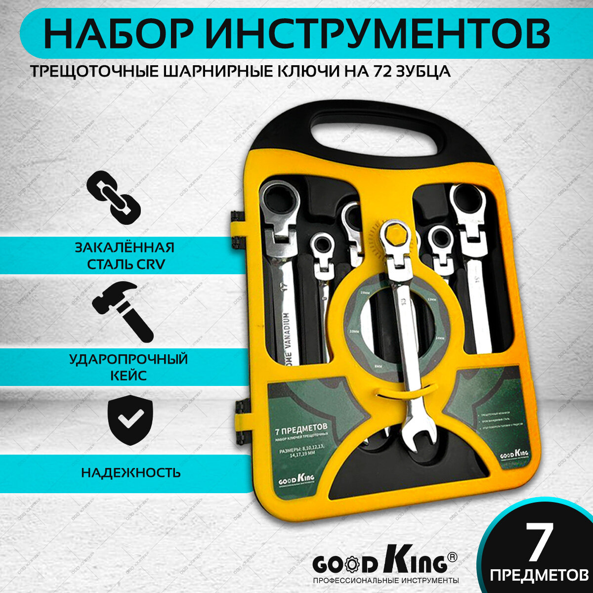 Набор ключей GOODKING, 7 штук, с трещоткой и шарниром (TK-1107)