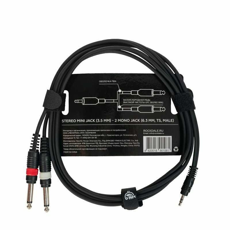 | Разъемы | mini jack 3.5 mm (M) - 2 x jack 6.3 mm mono (M) |