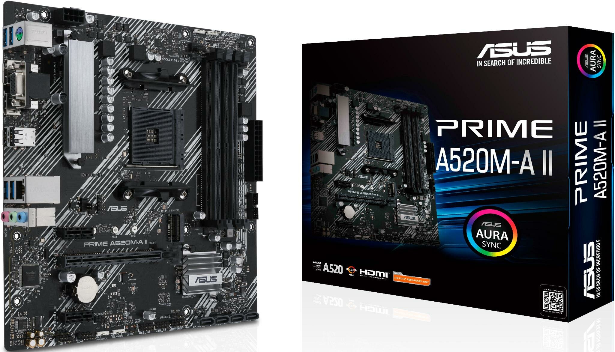 ASUS PRIME A520M-A II, Socket AM4, A520, 4*DDR4, D-Sub+DP+HDMI, SATA3 + RAID, Audio, Gb LAN, USB 3.2*5, USB 2.0*4, COM*1 header (w/o cable), mATX ; 9