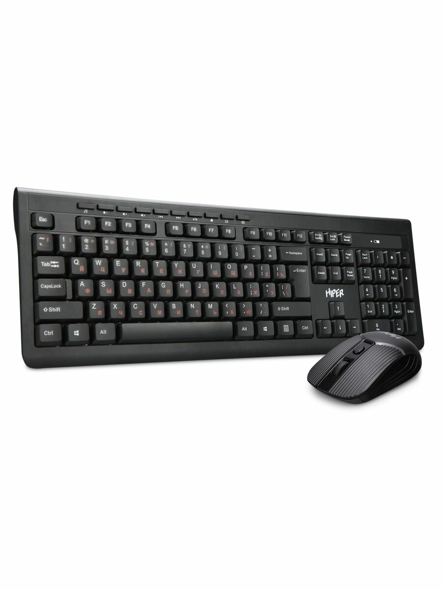 Клавиатура и мышь Wireless HIPER OSW-2100 черные, 114 кл, USB, 1600dpi, 4 кн