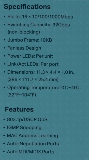 | Дополнительная информация | коммутатор TL-SG116, адаптер питания, руководство по настройке, резиновые ножки |