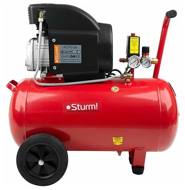 AC93166 Воздушный компрессор Sturm, 1600 Вт, 50л, 336л/мин, 8бар, 2850об/мин, манометр, колеса
