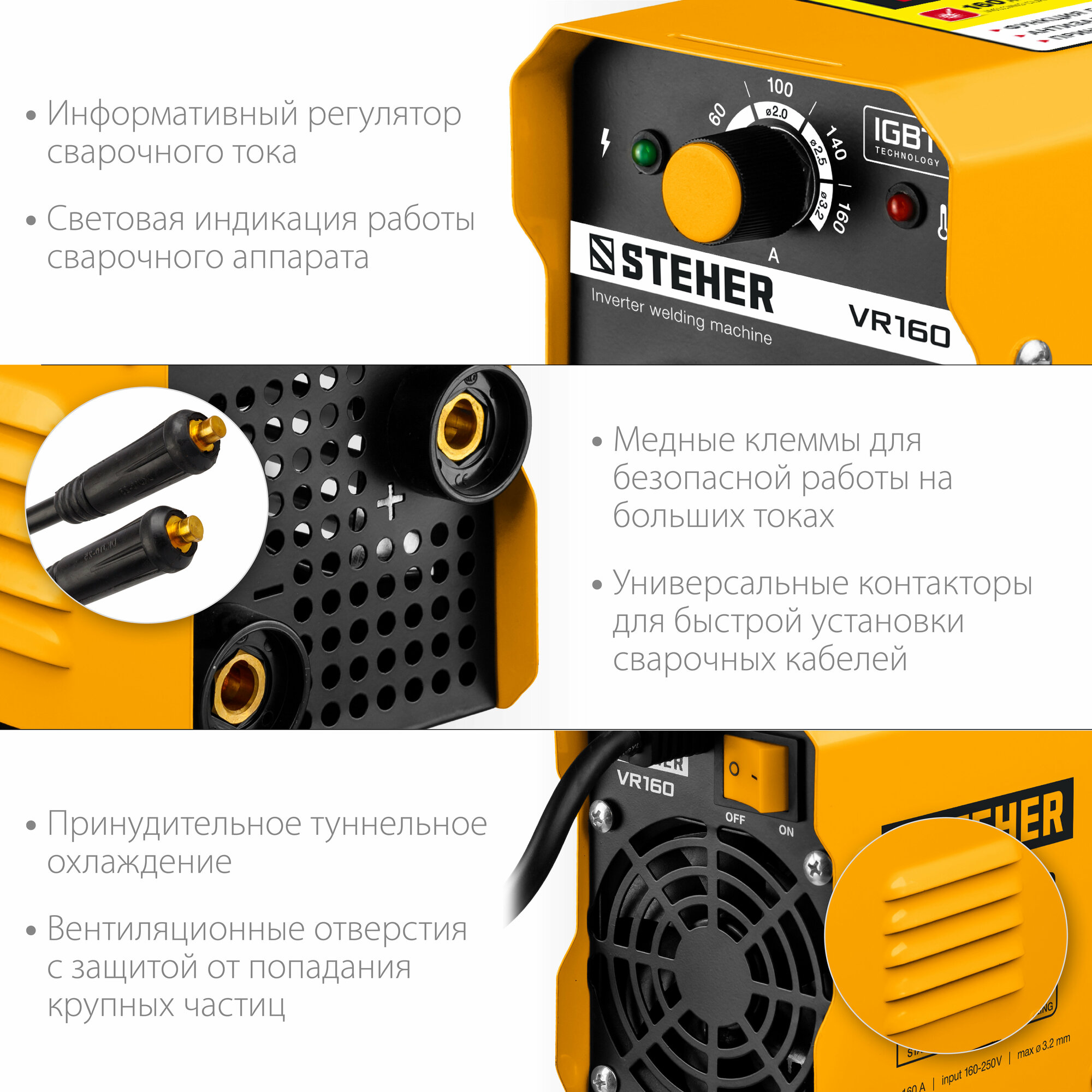 STEHER ММА, 160 А, сварочный аппарат инверторный, макс. электрод O 3.2 мм (VR-160)