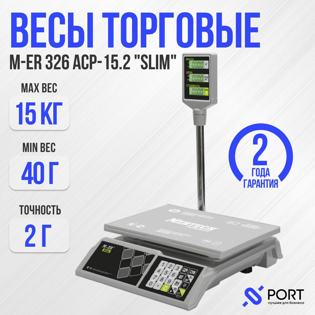 Весы электронные MERTECH M-ER 326 ACP-15.2 до 15кг LED, 2г, со стойкой