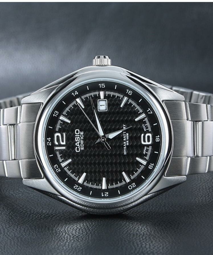 Casio EDIFICE EF-121D-1A купил недавно. Ношу на работу в офис. Смотрятся стильно и богато. Знакомые удивляются цене (дешево) для такого качества. Водонепроницаемость проверена в душе - полет нормальный. Корпус достаточно прочный. Очень красивый браслет. Тяжелые, надо привыкать. |
