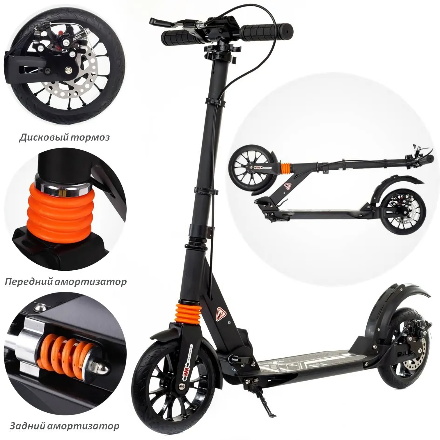 Купить Городской самокат Scooter Disk Brake 2024 с ручным дисковым тормозом и амортизаторами Чёрный