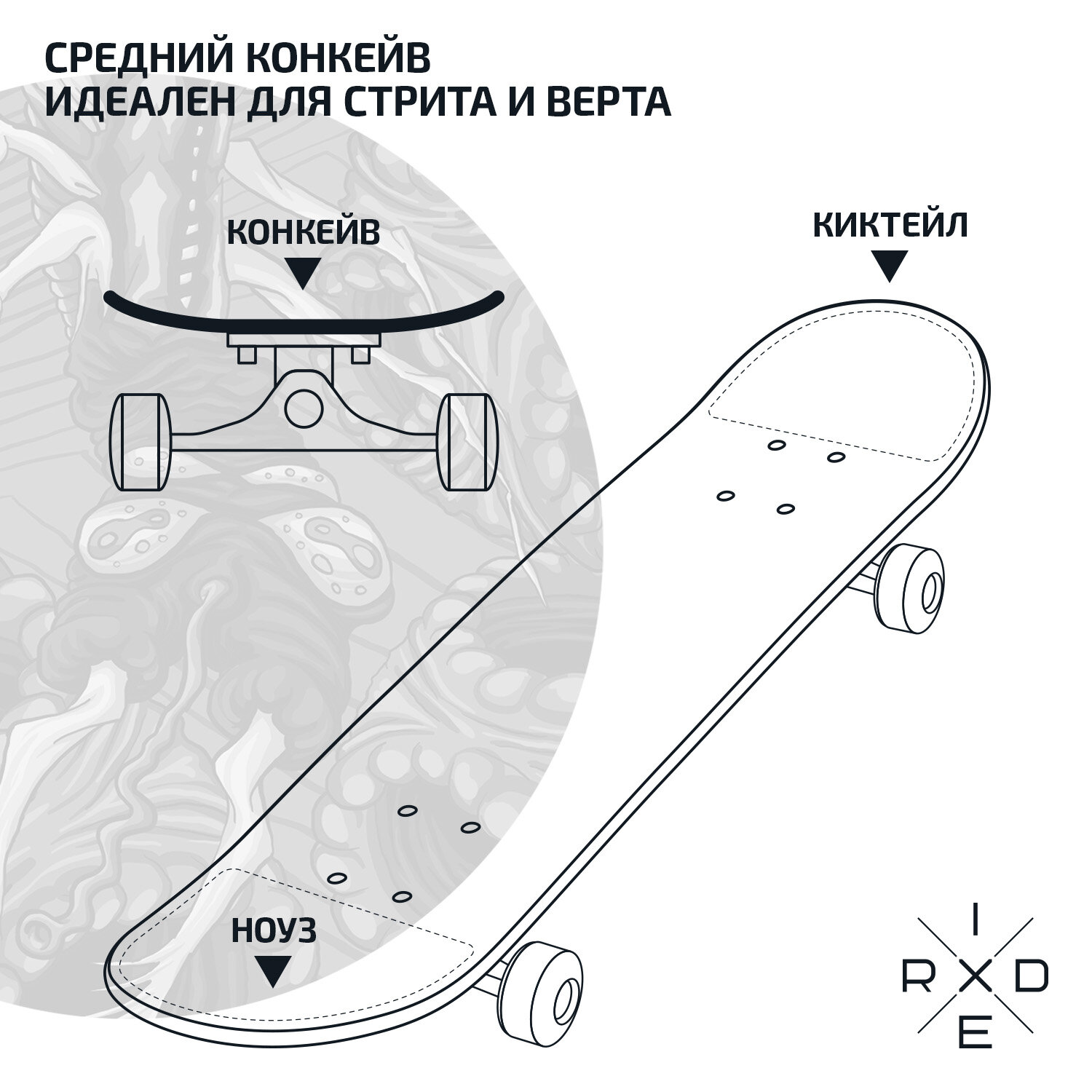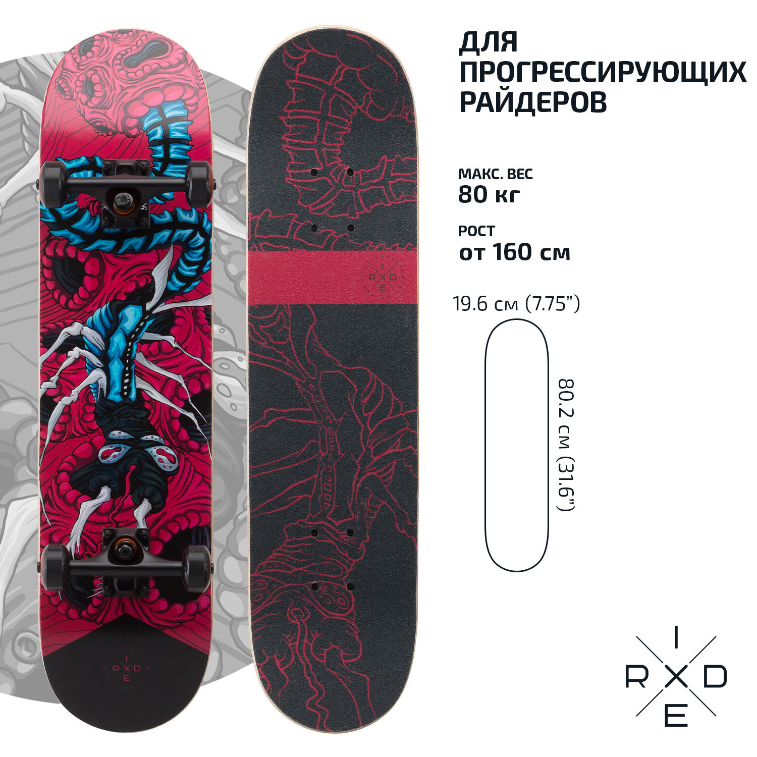 СохранитьСкейтборд RIDEX Crypt 31.6”х7.75” интересное:
