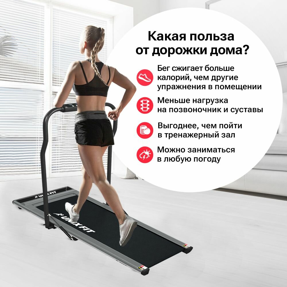 Беговая дорожка домашняя UNIXFIT R-300C 13 программ, макс. скорость 13 км/ч, ультракомпактное хранение, ультратонкая рама