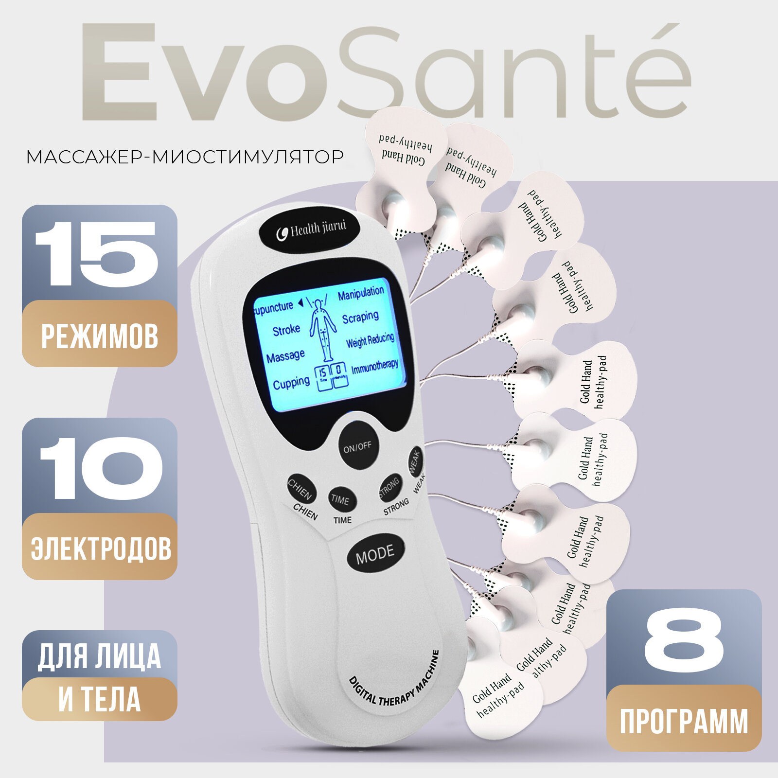 Импульсный миостимулятор Evo Sante массажер для тела. Тренажер для мышц. Миостимулятор для мышц. Оздоровление и физиотерапия, 8 электродов в комплекте. Массажер для всего тела