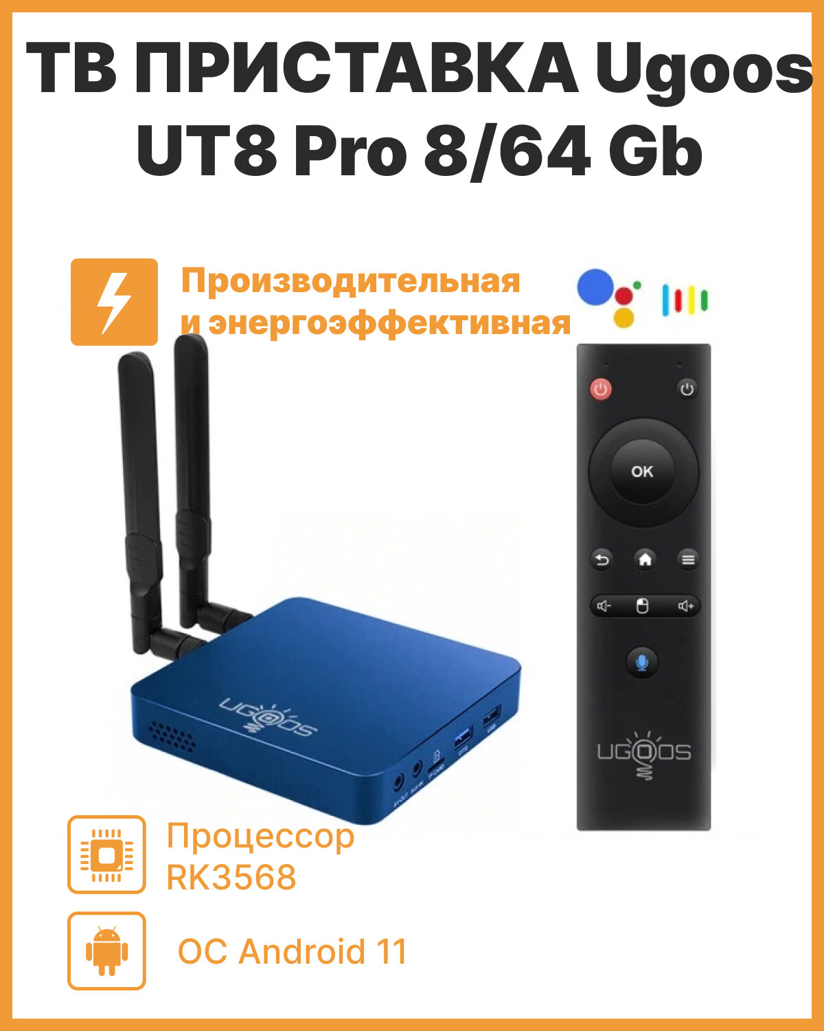 Купить Смарт ТВ приставка UGOOS UT8 PRO Андроид 11.0 8Гб 64Гб WiFi6 1000M HD 4K Голосовой Пульт Управления