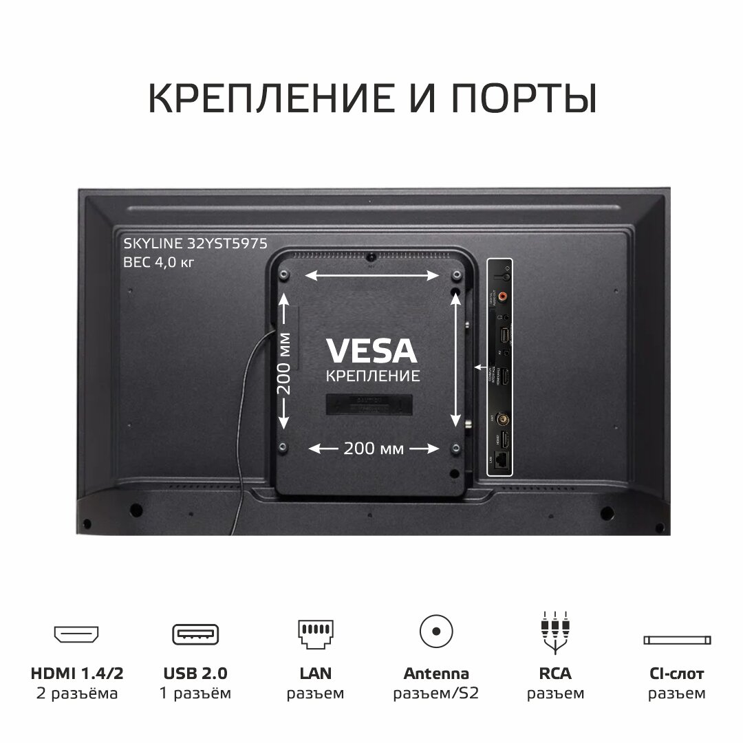 Купить 32" Телевизор SkyLine 32YST5975 (2021) на платформе Яндекс.ТВ, черный