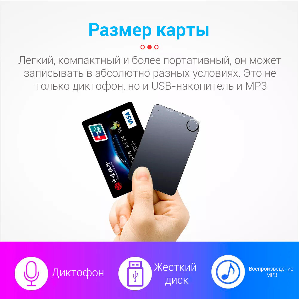 Самый тонкий диктофон в мире кредитна карта с голосовой активацией / Диктофон для бумажника