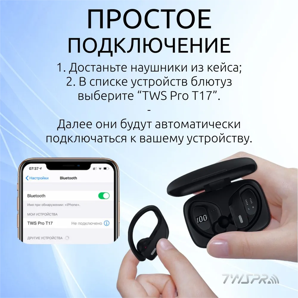 Наушники беспроводные для телефона спортивные с микрофоном для андроид, айфон/Блютуз гарнитура TWS Pro T17