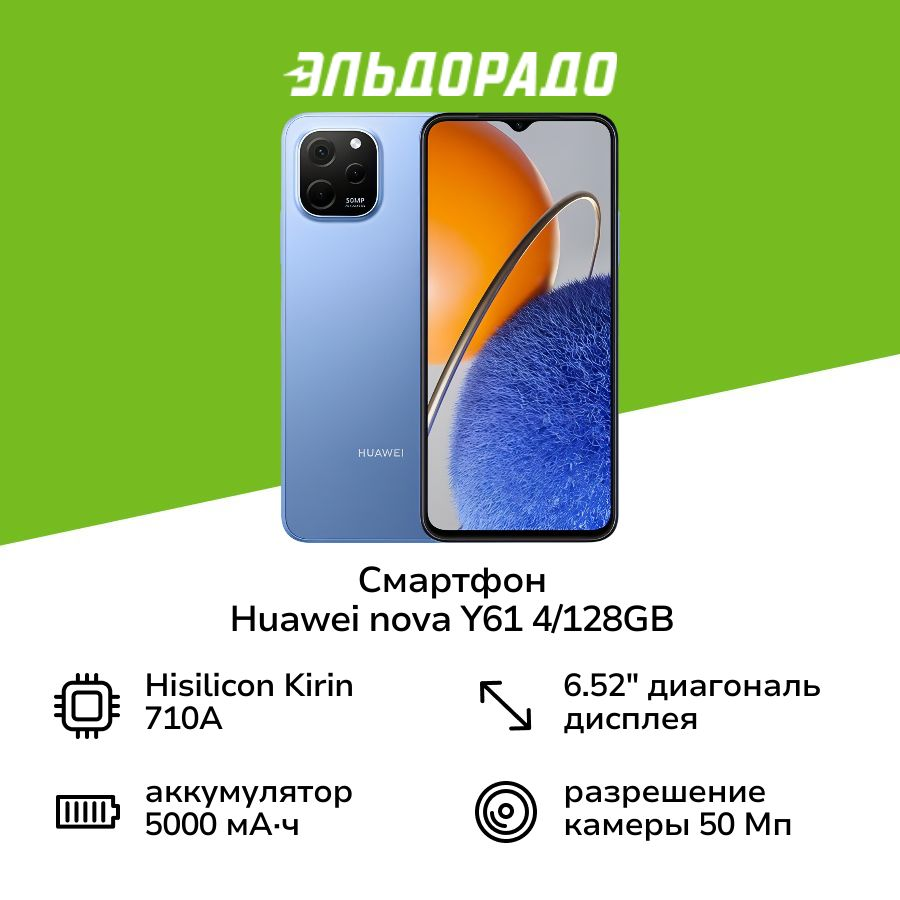 СохранитьСмартфон HUAWEI nova Y61 4/128GB сапфировый синий интересное: