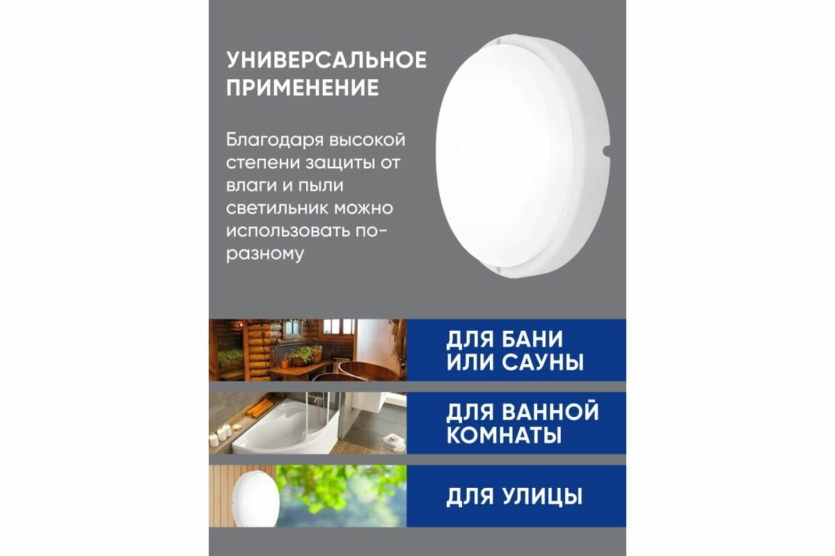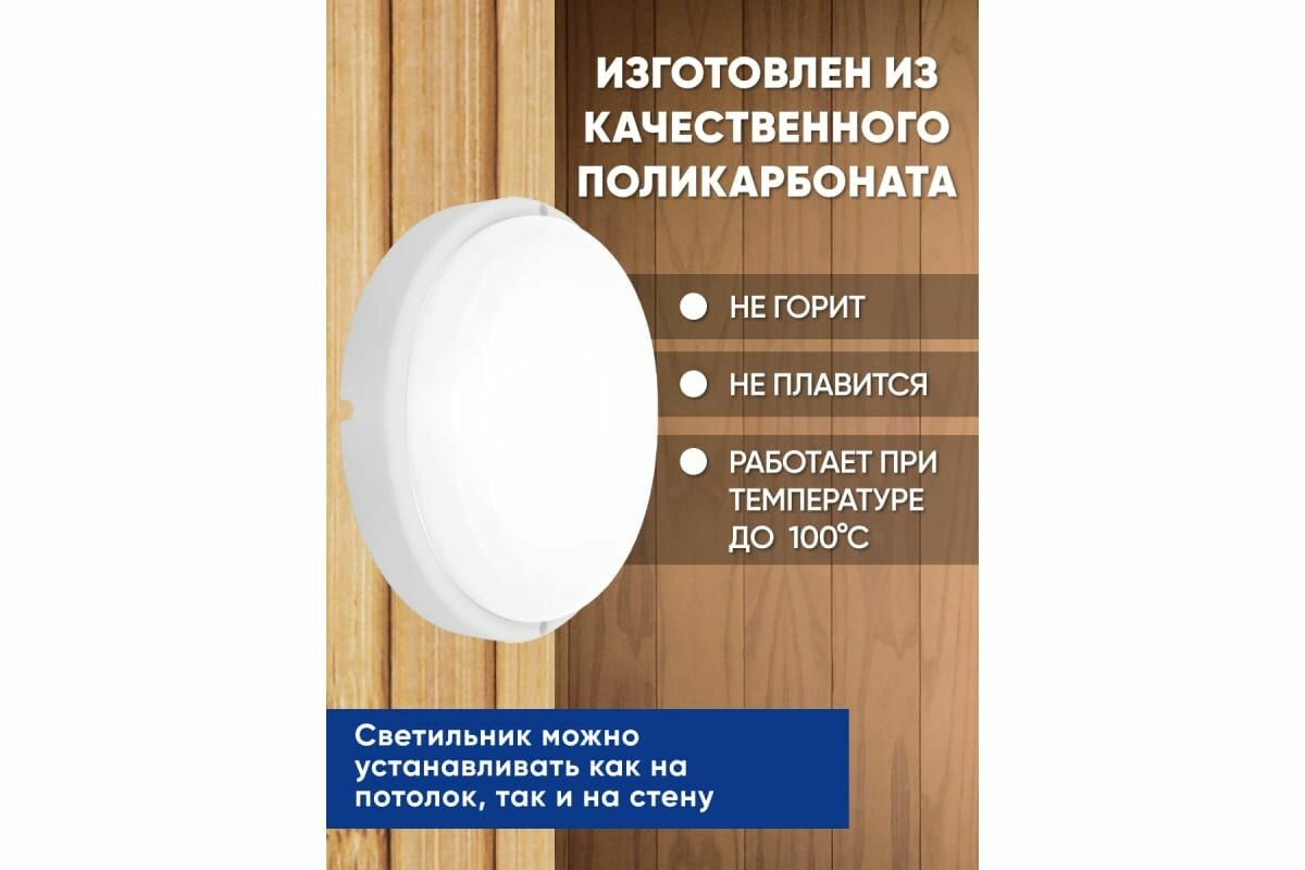 Светильник светодиодный пылевлагозащищённый, 15W, 1200Lm, 3000K, в пластиковом корпусе, IP65,белый AL3013 серия Sauna