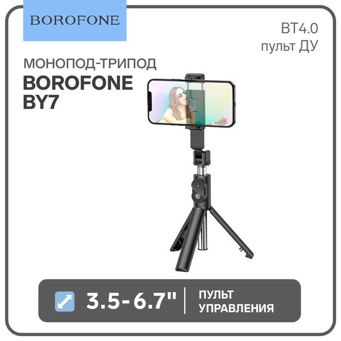 Монопод-трипод Borofone BY7, для диагонали 3.5-6.7", BT4.0, пульт ДУ, до 800 мм, чёрный