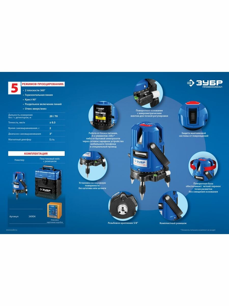 Лазерный нивелир ЗУБР Крест-55 20-70 м 34904