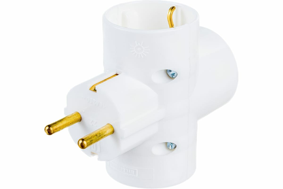 Разветвитель Bylectrica трехместный, крест, с заземляющим контактом, РВ16-377 .