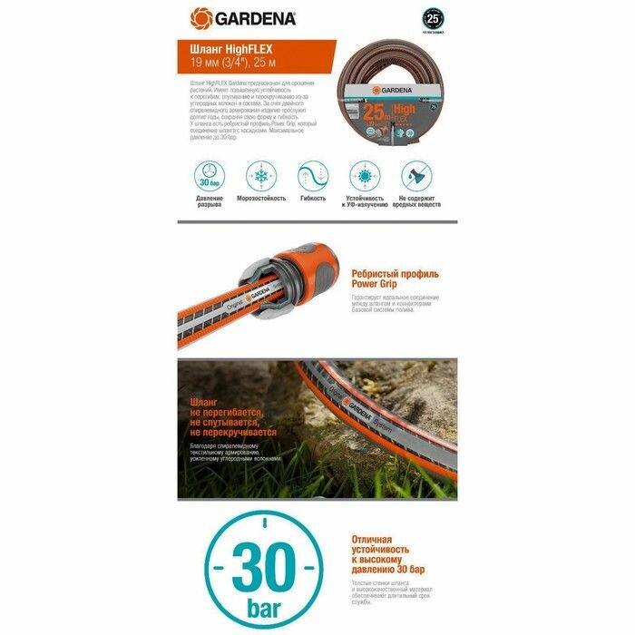 Шланг GARDENA HighFLEX 25м, 19 мм (3/4"), 30 бар (18083-20.000.00) (GARDENA)