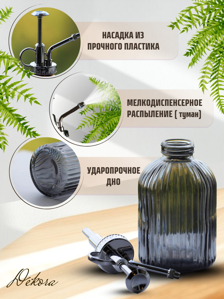 Пульверизатор для воды "Dekora" Стекло прозр. графит 320 мл/ пульверизатор опрыскиватель ручной интересное: