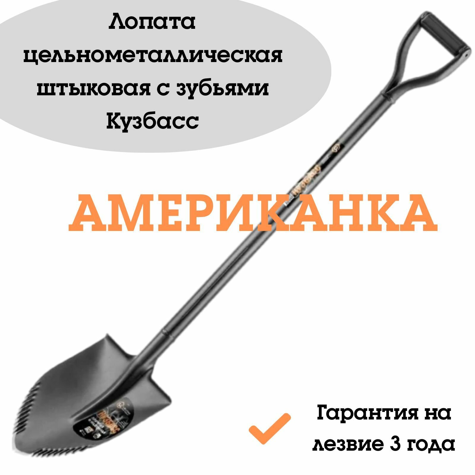 Лопата Кузбасс 1545, 120 СМ Цельнометаллическая Глубокая С Зубьями .