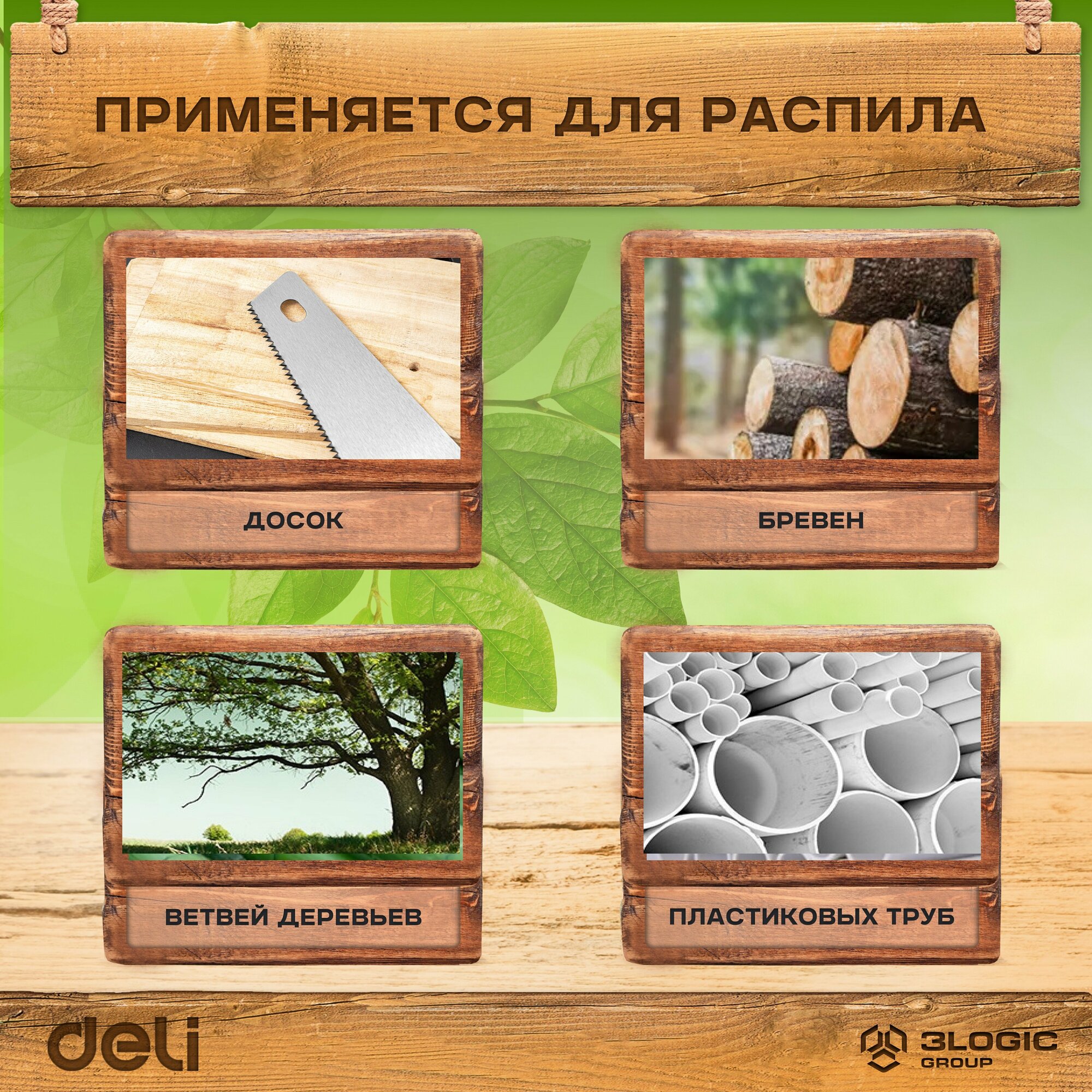 Садовая пила (ножовка) удлиненная по дереву Deli DL580933 330мм (7 зубьев на дюйм, 3D заточка, обрезиненная ручка, двухрядное распределение зубцов)