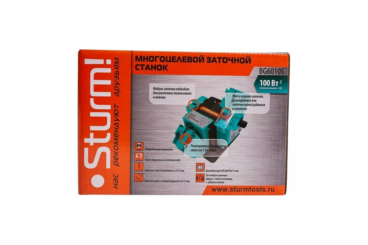BG6010S Точильный станок Sturm, многофункциональный, 100 Вт, 6700 об/мин, круг 49.3х10.2х7.5 мм