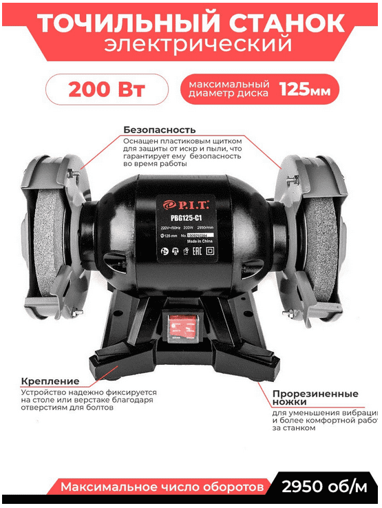 Станок точильный PBG125-C1 мастер, 2950 об./мин, 200Вт, 125мм P.I.T. PBG125-C1