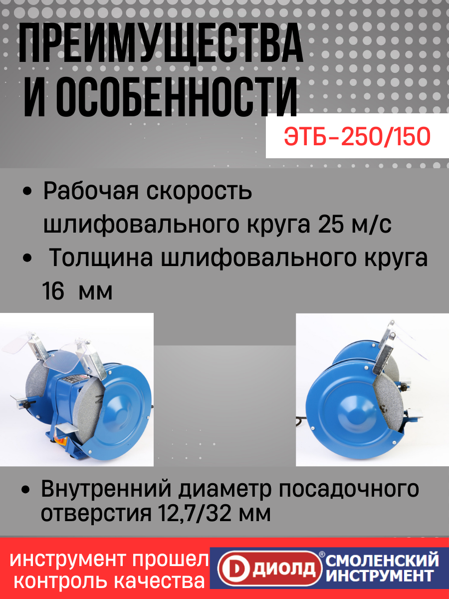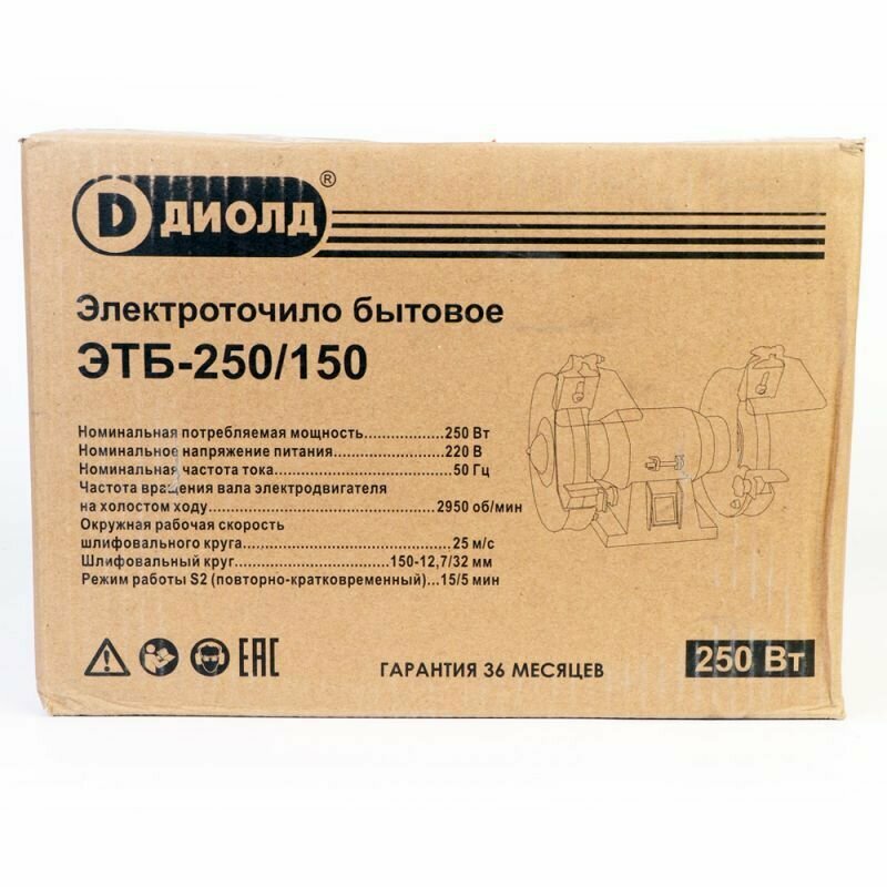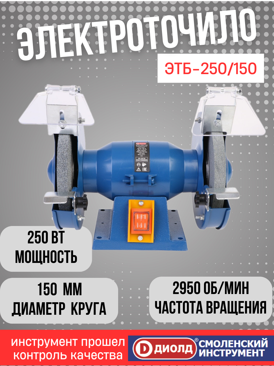 Электроточило диолд ЭТБ-250/150 / точильный станок, 250 Вт, 2950 об/мин, российский производитель