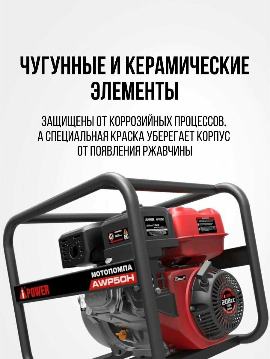 Бензиновая мотопомпа A-iPower AWP50H высоконапорная (7 л. с,475 л/мин. Вес 25,7 кг)