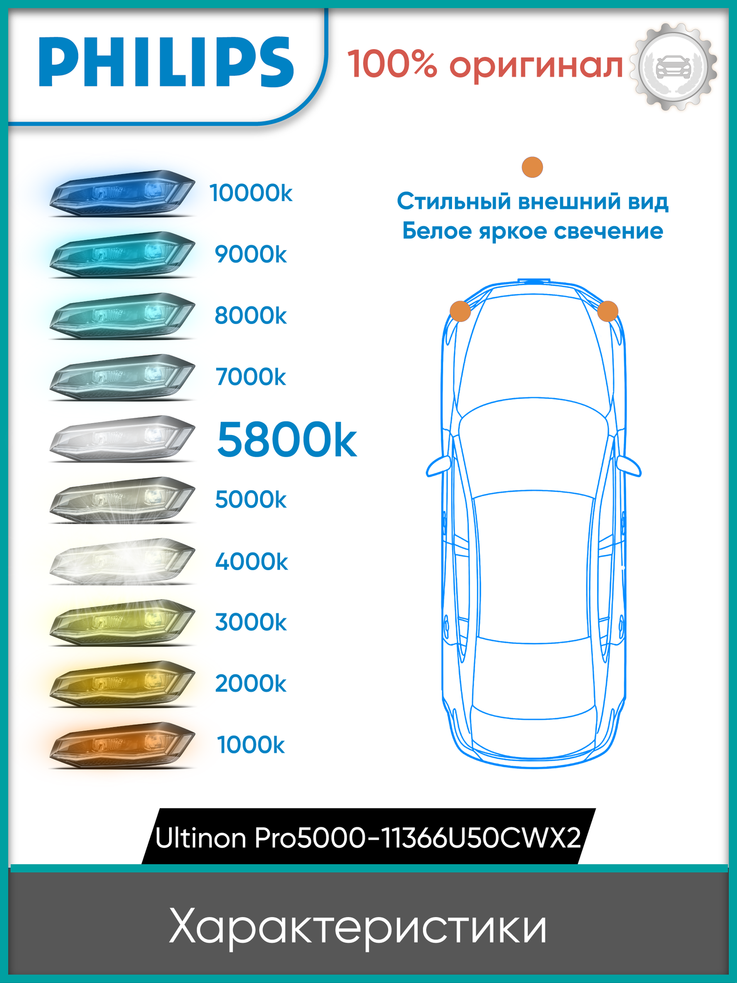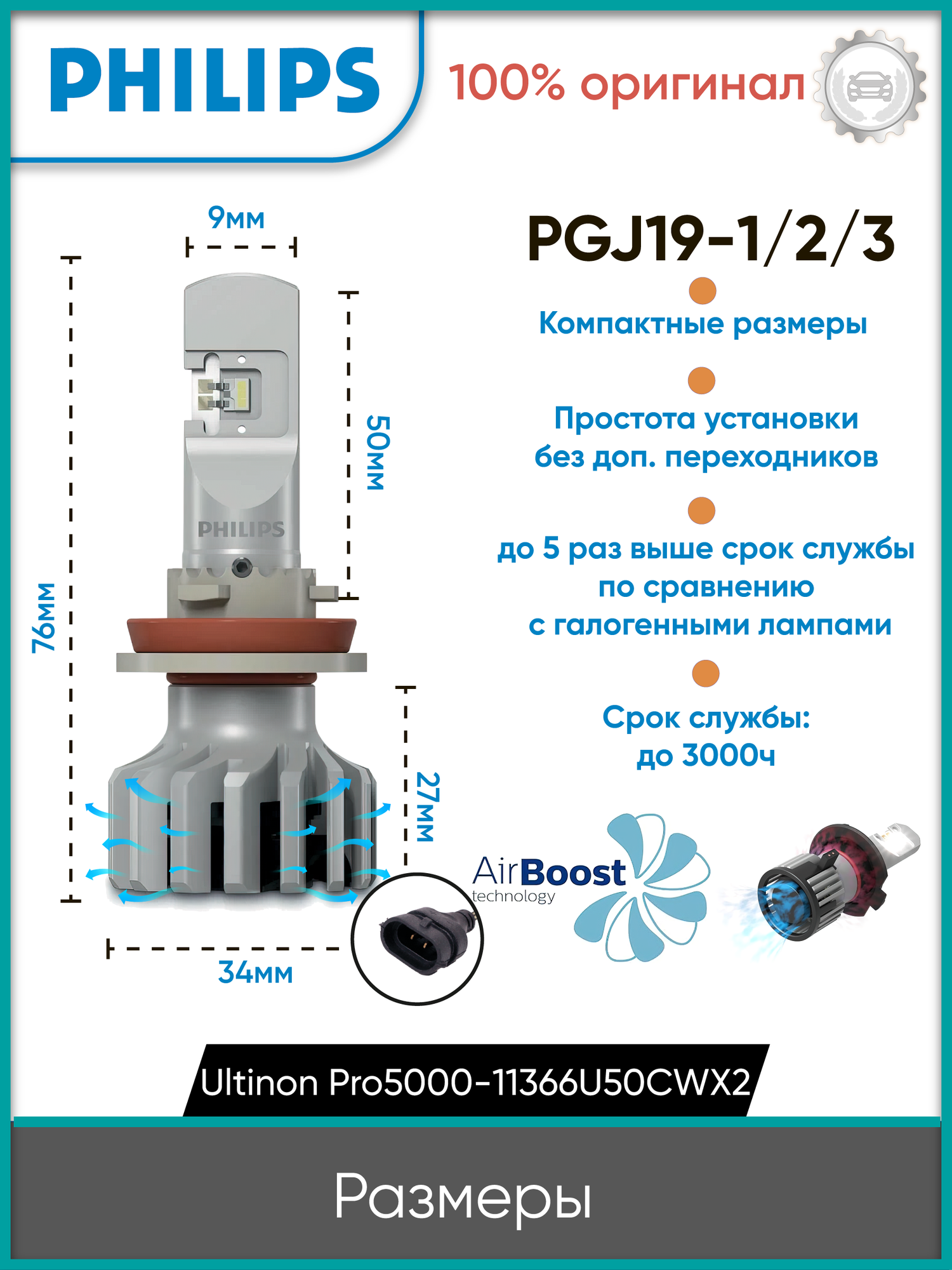 PHILIPS 11366U50CWX2 11366U50CWX2_к-кт ламп светодиодных FOG H8 H11 H16 Ultinon Pro5000 HL 5800K LED, 12W 13.2V 2шт