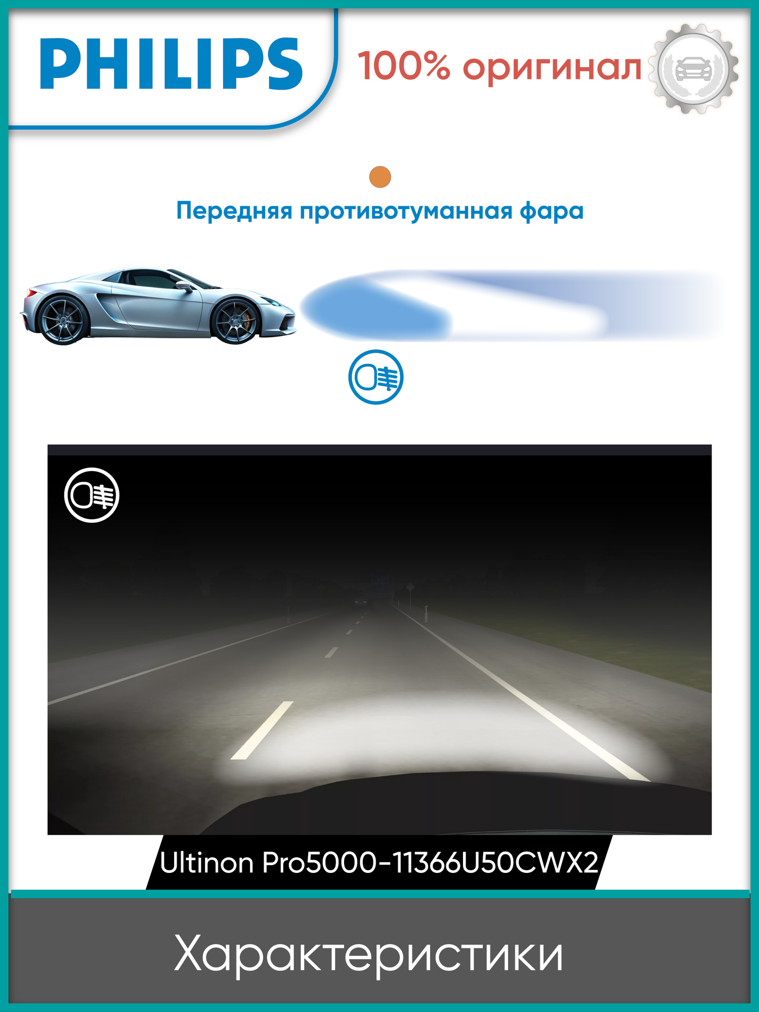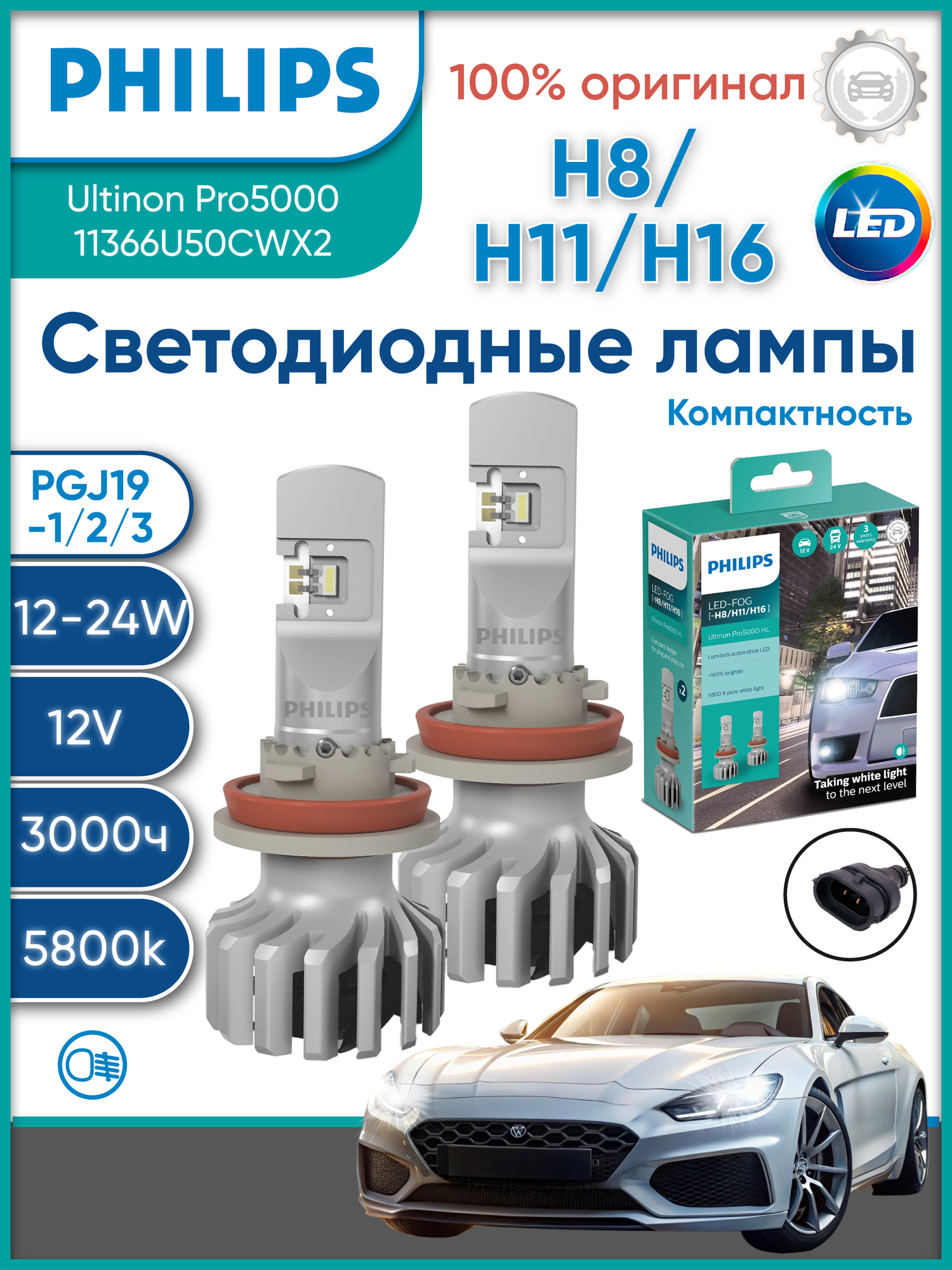 Лампа Fog H8/H11/H16 Ultinon Pro5000 Hl 5800K Led X2 Philips арт. 11366U50CWX2
