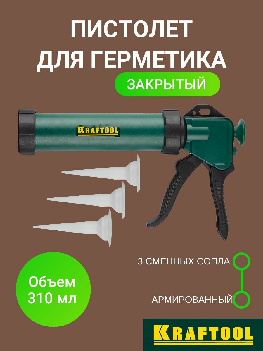 Купить KRAFTOOL 310мл, 3 сменных сопла, универсальный закрытый пистолет для герметика, PRO (06677)