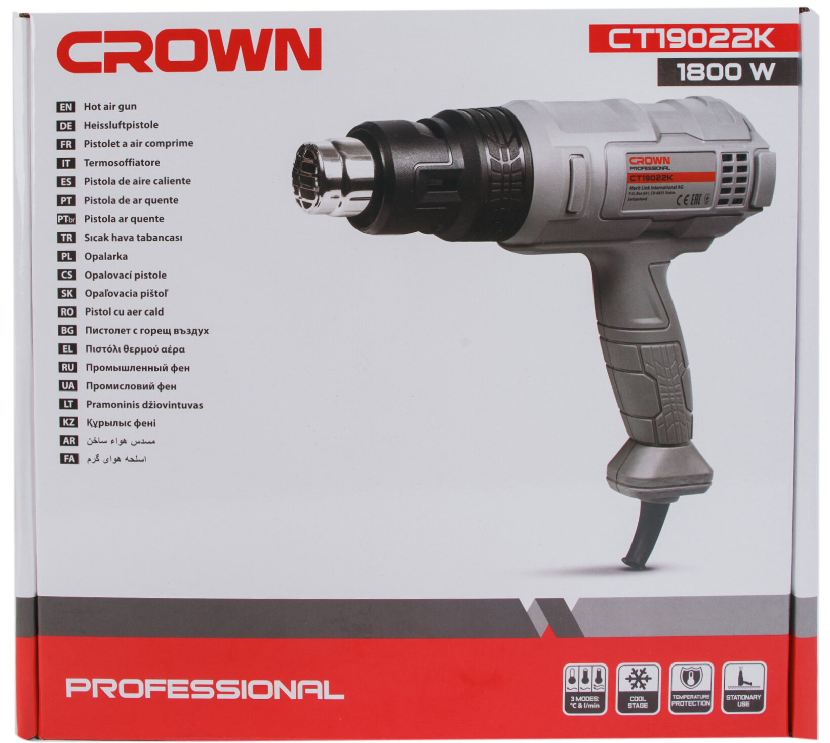 Строительный фен CROWN CT19022K, 1800 Вт