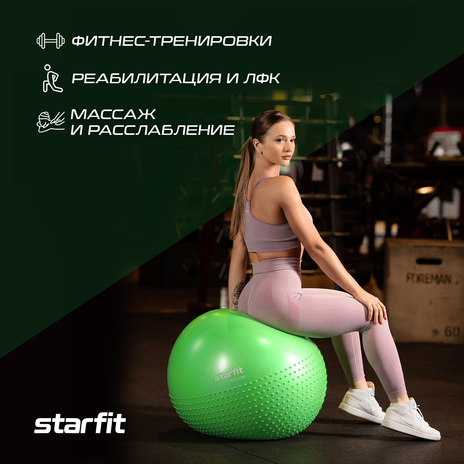 Фитбол полумассажный STARFIT Core GB-201 65 см, зеленый интересное: