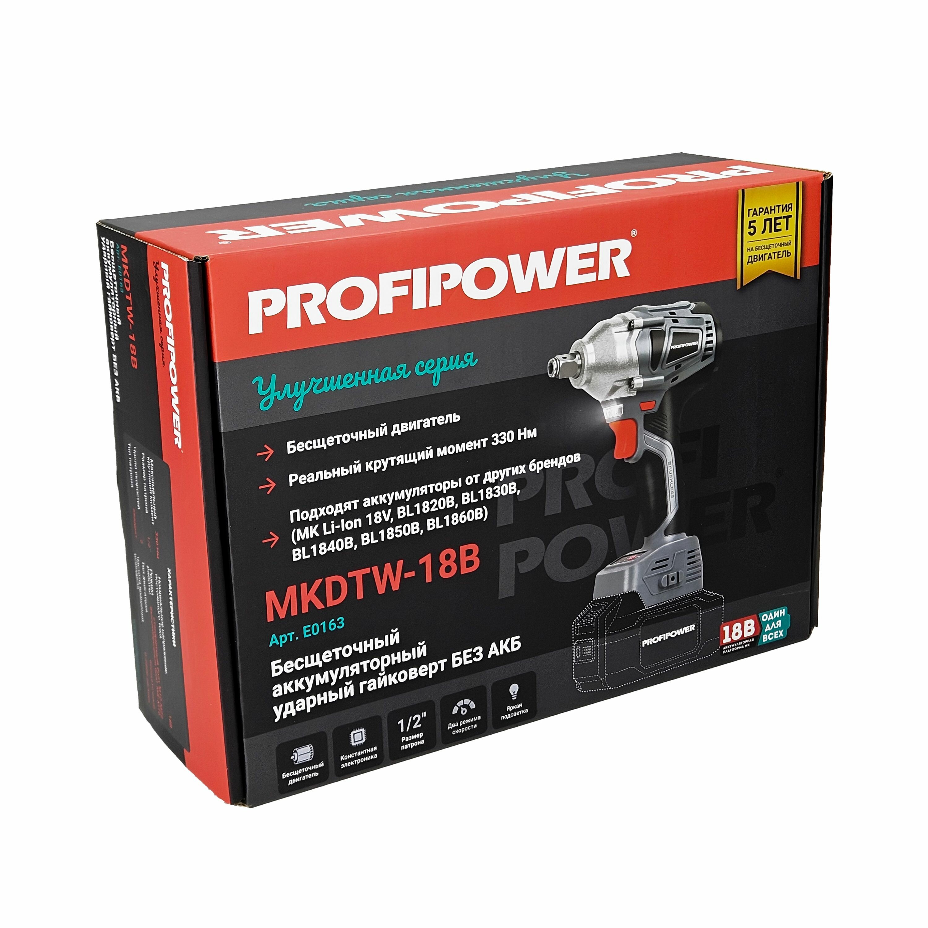 Гайковерт винтоверт ударный бесщеточный аккумуляторный Profipower MKDTW-18В (без АКБ, 330Нм,ударная головка) интересное: