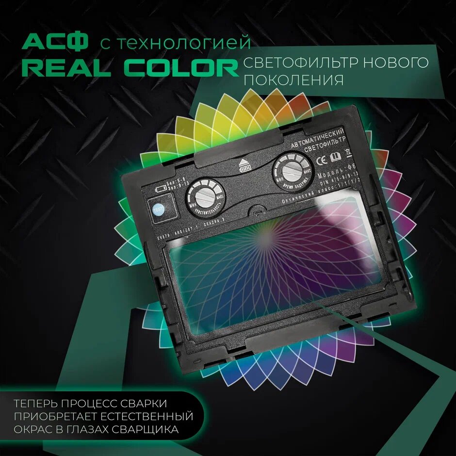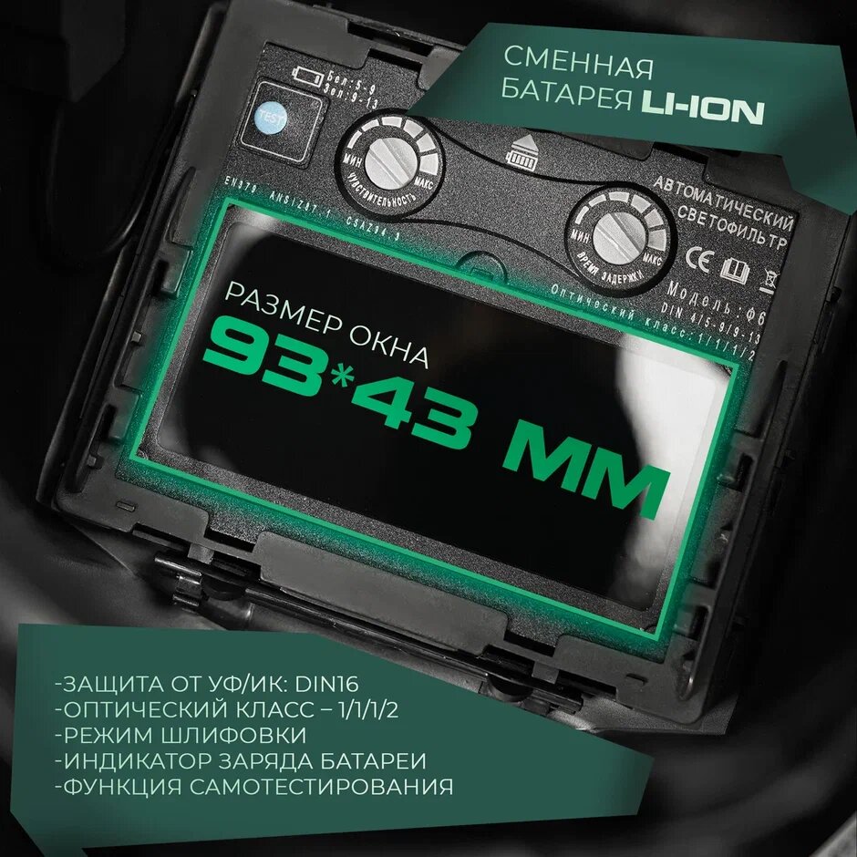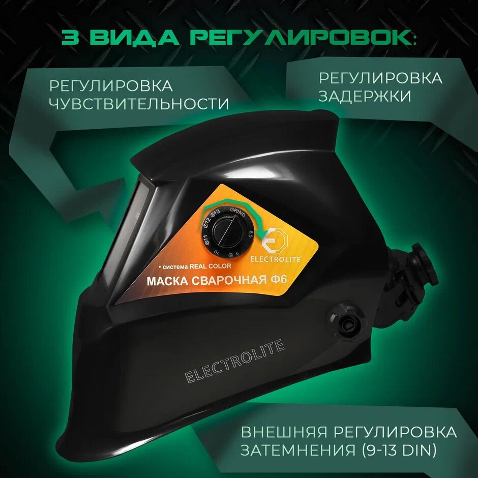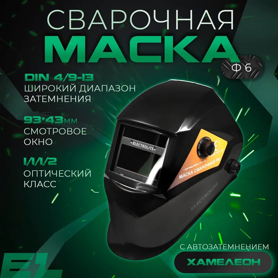 Маска сварщика хамелеон / Сварочная маска хамелеон / Маска сварщика / Сварочная маска Electrolite Ф6 Хамелеон ( 9-13 DIN, 93х43мм, ударопрочный пластик, внешняя регулировка)