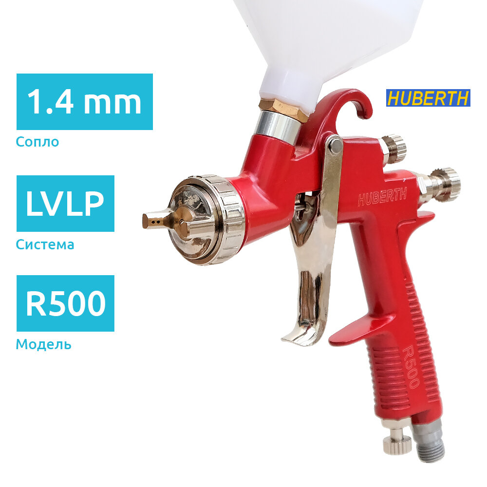 Краскопульт Huberth R500 LVLP с бачком 0,6 л, сопло 1,4 мм