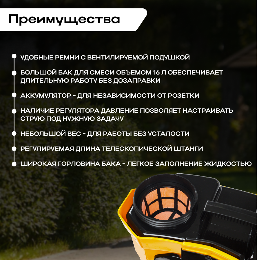 | Объем бака для распыления | 16 л |