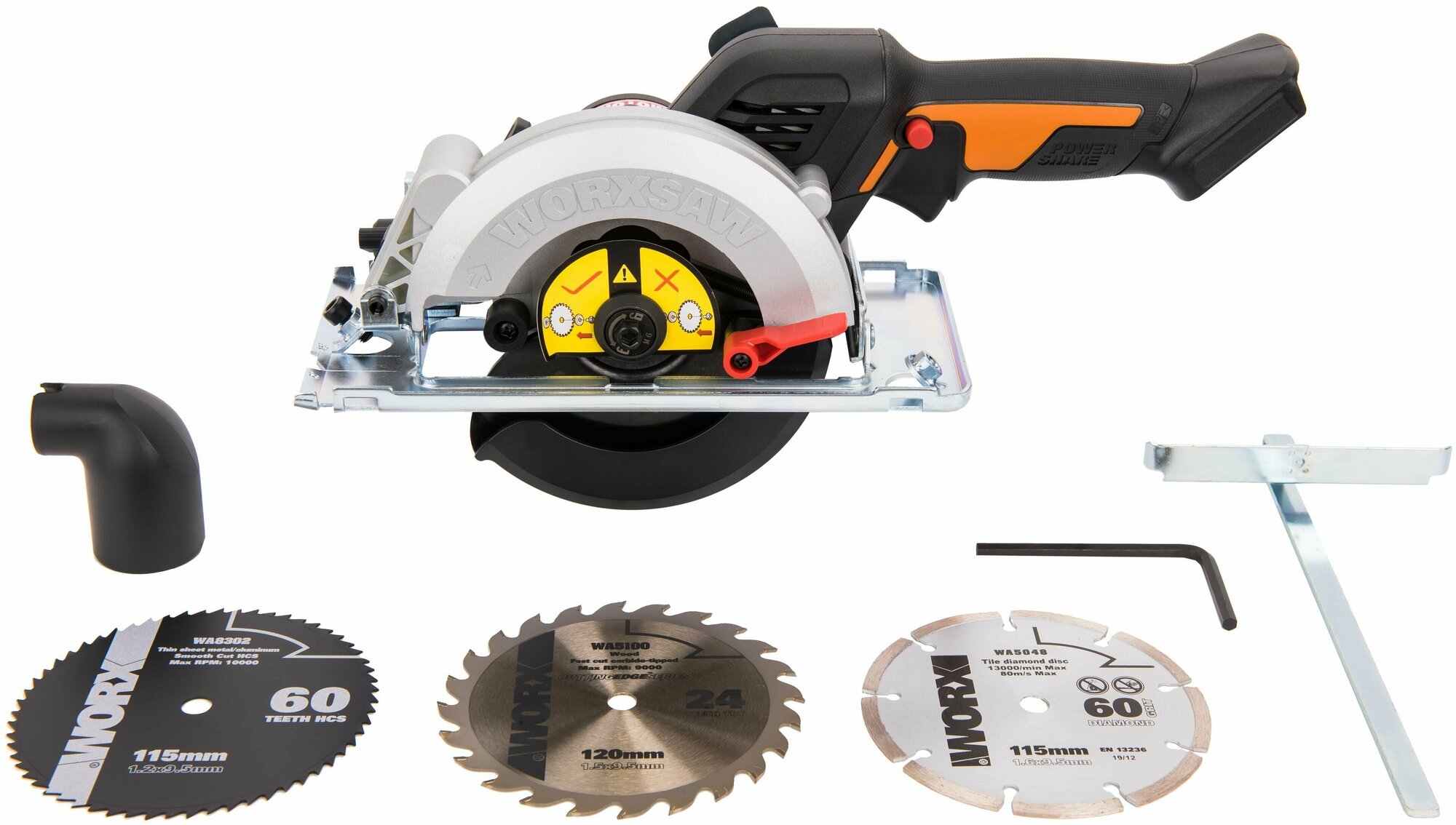 Циркулярная аккумуляторная бесщеточная мини-пила 120 мм 20В WORX worxsaw WX531.9, без АКБ и ЗУ