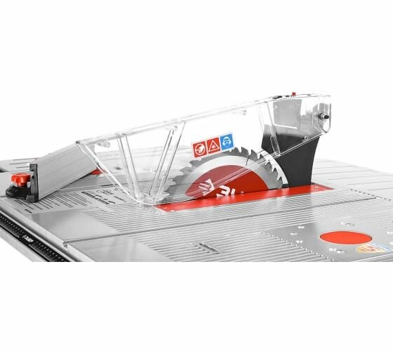 | Минусы: | Стол не ровный, очень тонкий, легко гнется рукой в районе пилы. Каретка параллельного реза болтается в направляющем пазу. |