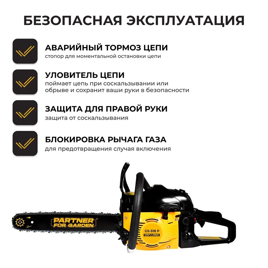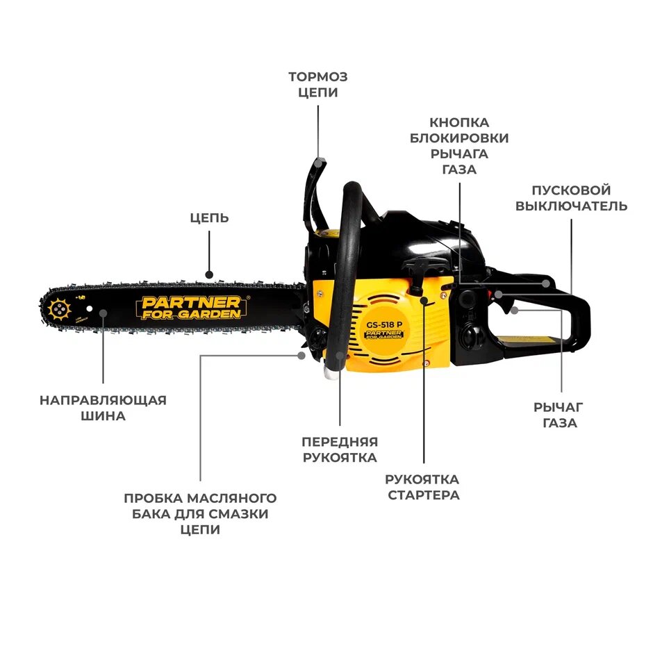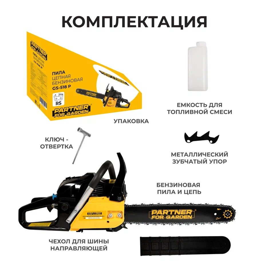 Бензопила / Бензопила бензиновая / Пила Partner for Garden GS 518 Р ( 3,5 л.с, мощность 2,4 кВт, длина шины 18" - 45 см )