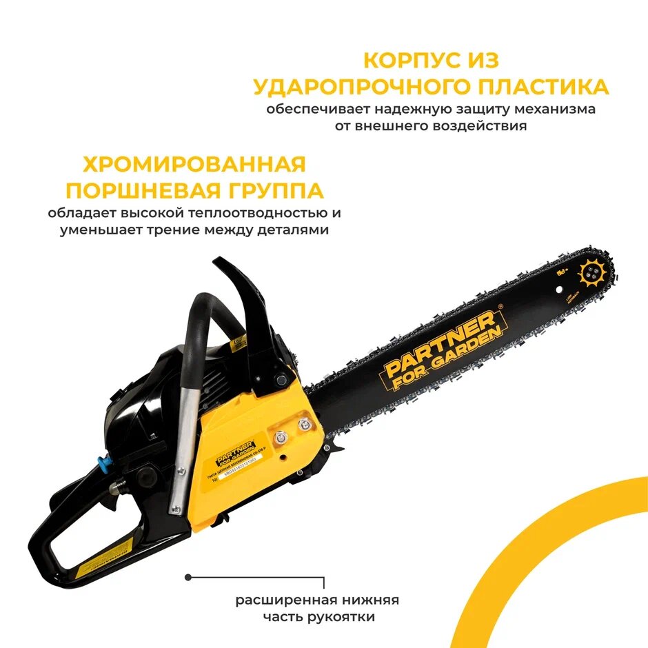 Купить Бензопила цепная / цепная бензиновая пила Partner for Garden GS 518 Р ( 3,5 л.с, мощность 2,4 кВт, длина шины 18" - 45 см )