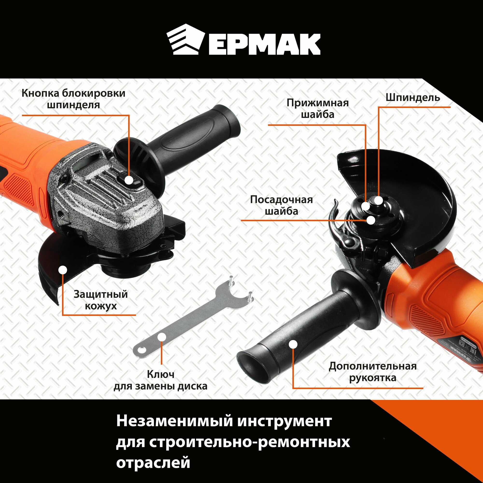 УШМ Ермак УШМ-125/800, 800 Вт, 125 мм